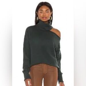 PAIGE Raudi Cold Shoulder Wool Blend Turtleneck Sweater in Dark Spruce Size M