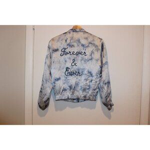 PAIGE Rosie HW Silk Tie-Dye Bomber Jacket "Forever & Ever" Embroidered Small ($3