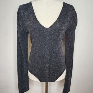 PAIGE Samina Black Metallic Bodysuit Size Medium