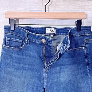 PAIGE Shelby Crop Flare Jeans Blue Dark Wash Mid Rise Stretch Denim Womens 30