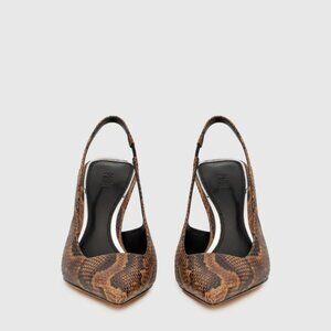 PAIGE Sienna Pump in Chestnut snake skin mid high heel slingback pointed toe