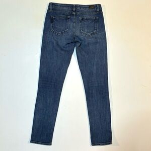 PAIGE Skyline Ankle Peg Jeans, size 27. Premium denim brand. Stretchy comfortable 75 cotton, 12 lyocell, 12 poly, 1% elastane for a perfect flattering fit. Classic 5 pocket style. Rise 8", waist 14.5" side to side, laying flat. Inseam 28.25" - 28.5". In good condition, soft with some light signs of wear, priced accordingly. Ships promptly from non-smoking home. (#7907)