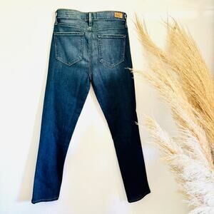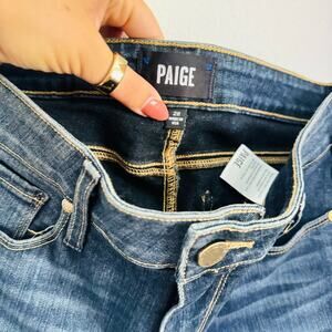 PAIGE Skyline Straight Leg Skinny High Rise Dark Blue Brent Wash Denim Jeans 28