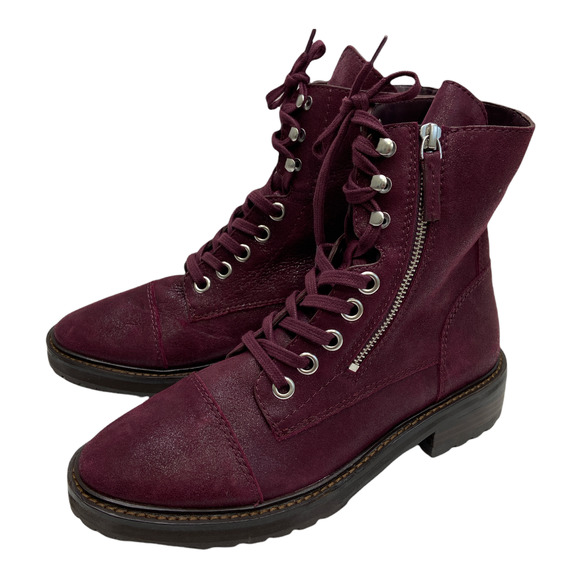 These are PAIGE Women's Purple Suede Marline Lace-Up Combat Boots Size 7
