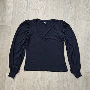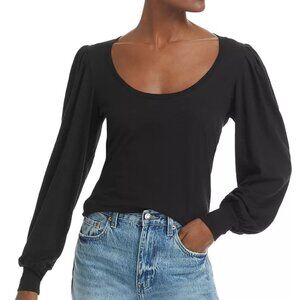 PAIGE Sylvie Scoop Neck Puff Sleeve Tee – Size M, Black