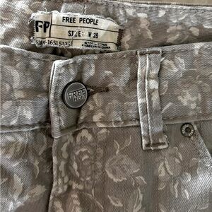These are such beautiful jeans, with soft cream floral print on the perfect khaki color skinny jeans, with stretch for comfort.