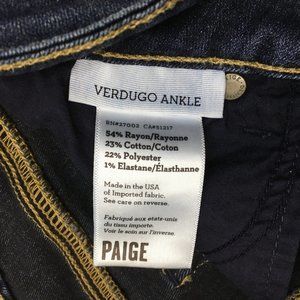 PAIGE Transcend Wash Verdugo Ankle 5 Pocket Logo Hardware Jeans