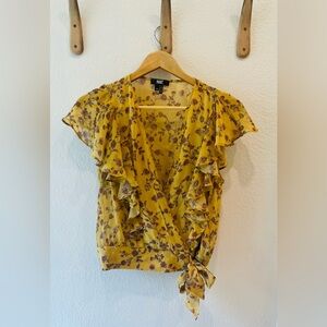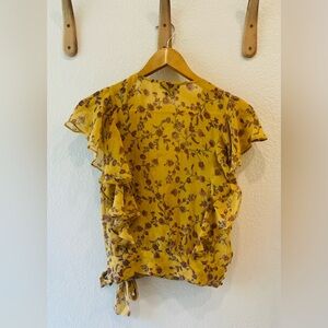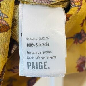 PAIGE Trista Yellow Floral Printed Silk Flutter Sleeve Surplice Blouse size XS