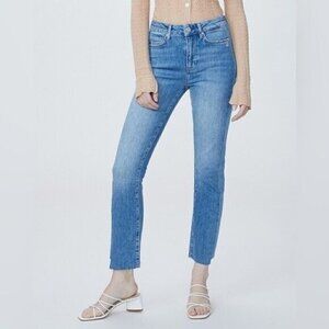 PAIGE Two-Toned High-Rise Straight Leg Raw Hem Distressed Jeans size 25