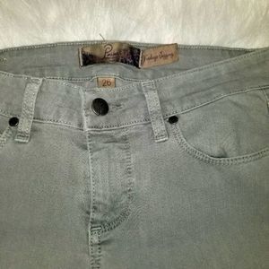 Zip fly with button closure - 5 pocket style - Skinny leg - Stretch fit - Approx. 9" rise, 29" inseam (size 26) - Imported
