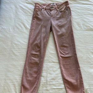 These super soft and pre-loved jeans are a unique rose color and ready for your fall wardrobe.