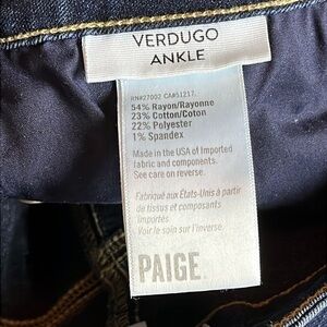 FEATURES Flaunt long, lean legs with the curve-hugging fit of Paige Denim's Verdugo jeans. This skinny denim features an ankle length--perfect for highlighting your latest heels.
