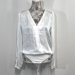 PAIGE -WHITNEY White rayon long sleeve body suit size M.
