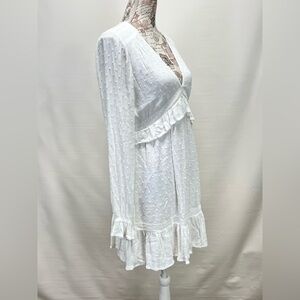 PAIGE White ODELISE raised dot ruffle hem mini dress size S.