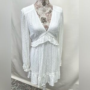 White ODELISE raised dot layered ruffle hem mini dress from PAIGE, size S.