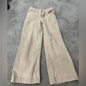 Elegant cream flare jeans by PAIGE. Wide leg design for a chic look. Perfect for casual outings.