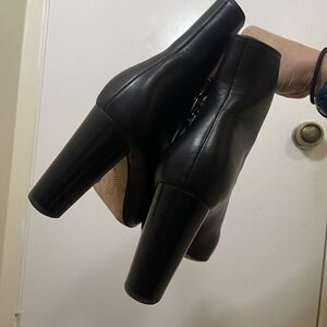 PAIGE Women's Kate Black Asymmetrical Leather Point-Toe Ankle Bootie US 9.5