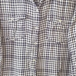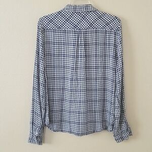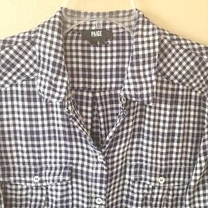 EUC PAIGE Mya womens navy blue and white gingham plaid button down shirt