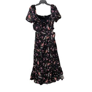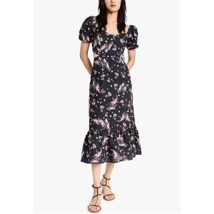 PAIGE Women's Size 12 Linh Dress Floral Smocked Black Multi Linen/Cotton Blend