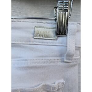 PAIGE Womens White Lou Lou Flare Jeans 28 Distressed Raw Hem Western Concert. Jeans are in very good condition with minimal signs of wear. There is some chipping in the button that can be seen in up close photo. Jeans retail for 198$