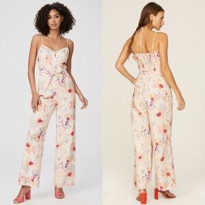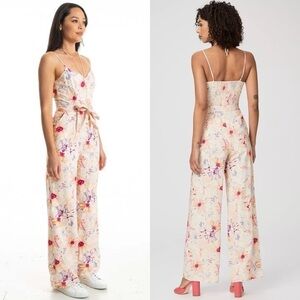 PAIGE X LIBERTY Floral Linen Sleeveless Belted Tie Neck Wide Leg Jumpsuit 4