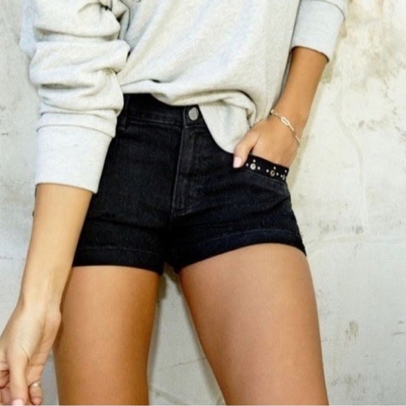 PAIGE X Rosie HW Anja Shorts in "Onyx" Black Embellished Grommet Silver Size 27