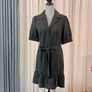PAIGE dress button front ruffled hemline pockets self tie women’s size medium