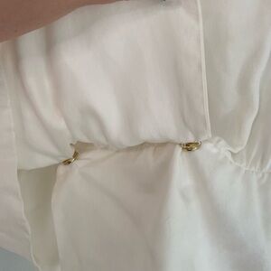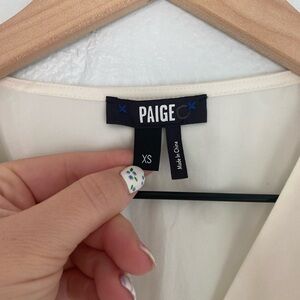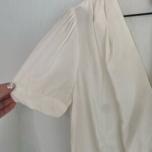 Elegant ivory blouse with puff sleeves. Stylish wrap design. Perfect for any occasion.