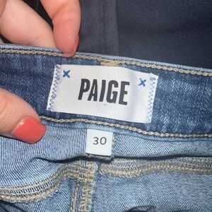 PAIGE women’s blue verdugo crop distressed knee hole denim jeans 30 contemporary