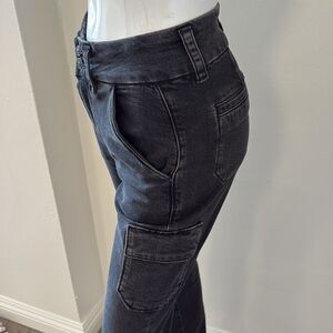 PAIGE Denim Dion High Rise Cargo Pocket Bootcut Jeans in Oblivion Washed Black