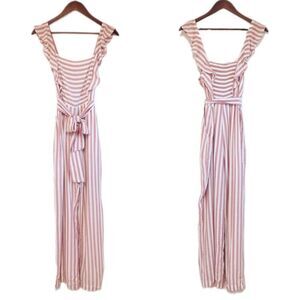 PAIGE Marino Striped Pink White Sleeveless Jumpsuit Tie Belt Size Small New