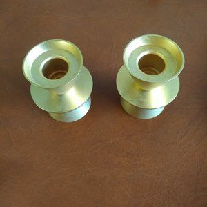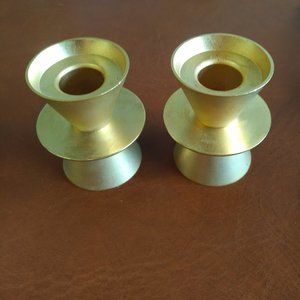 PAIR OF MATTE GOLD SHORT DOUBLE DISK CANDLESTICKS - Set of two Matte Gold Double Disk Candlesticks with opening for 1" dia. candles. The Candlesticks have a matte gold finish. They are heavy Candlesticks that can be spray painted to any color preference.