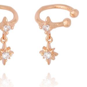 PAIR OF PIERCING FAKE STAR RADIANT ZIRCONIA + ROSE GOLD PLATED