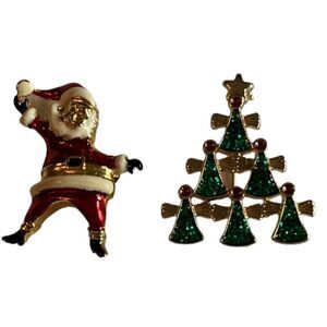 PAIR of Christmas Pins - Santa and Angel Tree Brooches