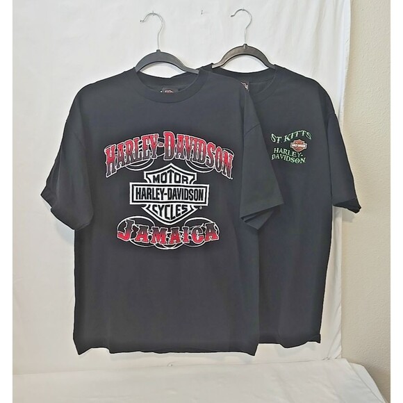 PAIR of Harley Davidson XL T Shirts St. Kitts & Jamaica Black Travel Motorcycle