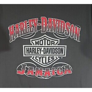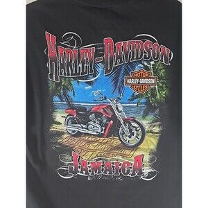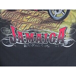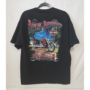 The product is a pair of Harley Davidson XL T-shirts featuring a graphic print of St. Kitts on one & Jamaica on the other.