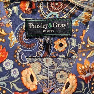 Classy PAISLEY & GRAY Long sleeve shirt - Slim Fit XXL (I find their Slim Fit XXL is comparable in size to a Robert Graham Classic Fit XL). NEW WITH TAGS. This is their Samuel spread collar shirt in the Blue Paisley pattern...perfect for year round events. 98% cotton / 2% spandex -- so it has some nice stretch to make it comfortable.