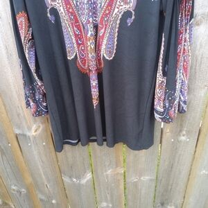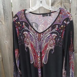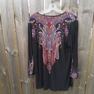 double patterned top. the colorful paisley that is very visible. this also has a very light black floral pattern built into the fabric.