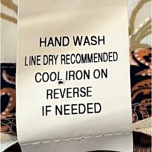 97% Polyester, 3% Spandex; Recommended on Tag: Hand wash, line dry