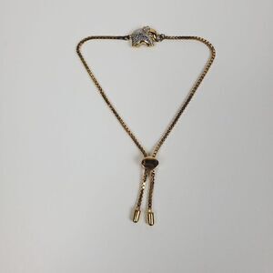 PAJ BR Genuine Diamond Chip Elephant Gold Tone Box Chain Adjustable Bracelet