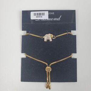 PAJ BR Genuine Diamond Chip Elephant Trunk Up Gold Tone Box Chain Adjustable Bracelet or Anklet Ankle Bracelet