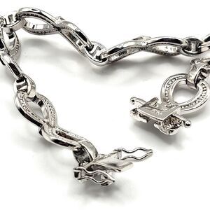 PAJ Infinity Link Bracelet Silver Tone Classy Elegant 7.5in | Materials: silver metal alloy | Length: 7.5in | Clasp: box toggle clasp | Signed? PAJ | Excellent vintage condition
