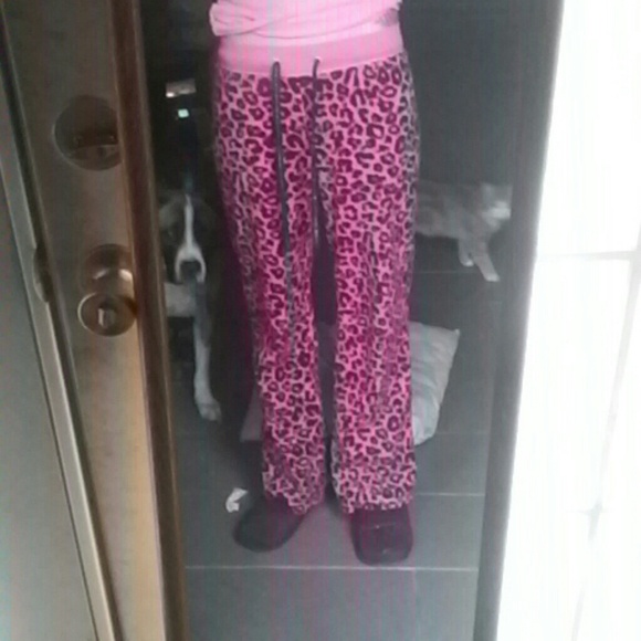 Pink spotted very comfy, very warm, worn this once to show. This are a soft velour feeling
