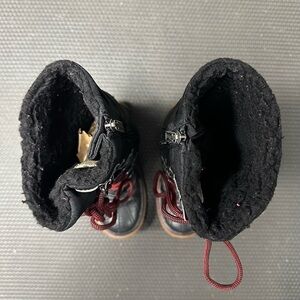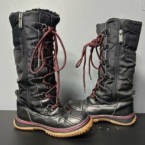 Keep your little girl cozy during the chilly winter months with these Pajar Canada tall below knee grip boots. The lace-up closure ensures a secure fit while the rubber outsole provides durable traction on slippery surfaces. These black snow boots are made with a nylon upper material and feature a faux fur insole for added warmth. Boots are pre-owned, please see pics for details and condition.