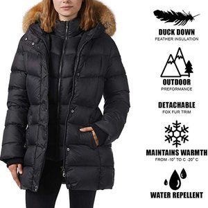 PAJAR Women's Feather Down Faux Fur Trim Puffer Coat- Heavyweight Winter