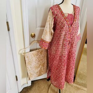 Gorgeous high quality formal dress with rhinestone and embroidered work on overlay shirt paired with wide leg pants
