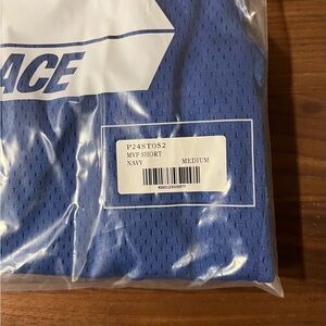 PALACE MVP MESH BASKETBALL SHORTS NAVY (BLUE) MEN’S SIZE MEDIUM SUMMER 2023. Poly mesh short. Contrast taped side seem and hem. Palace embroidery on left leg. P badge on right leg. Branded aglets. Brand new with tags. 100% authentic guaranteed. Fast and free shipping