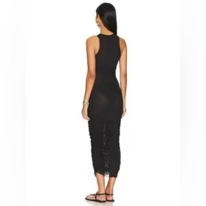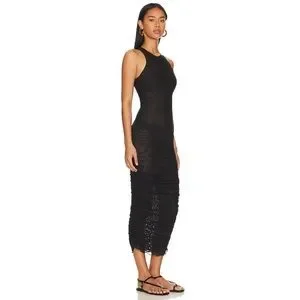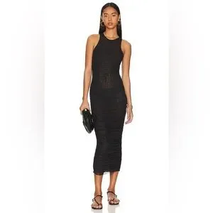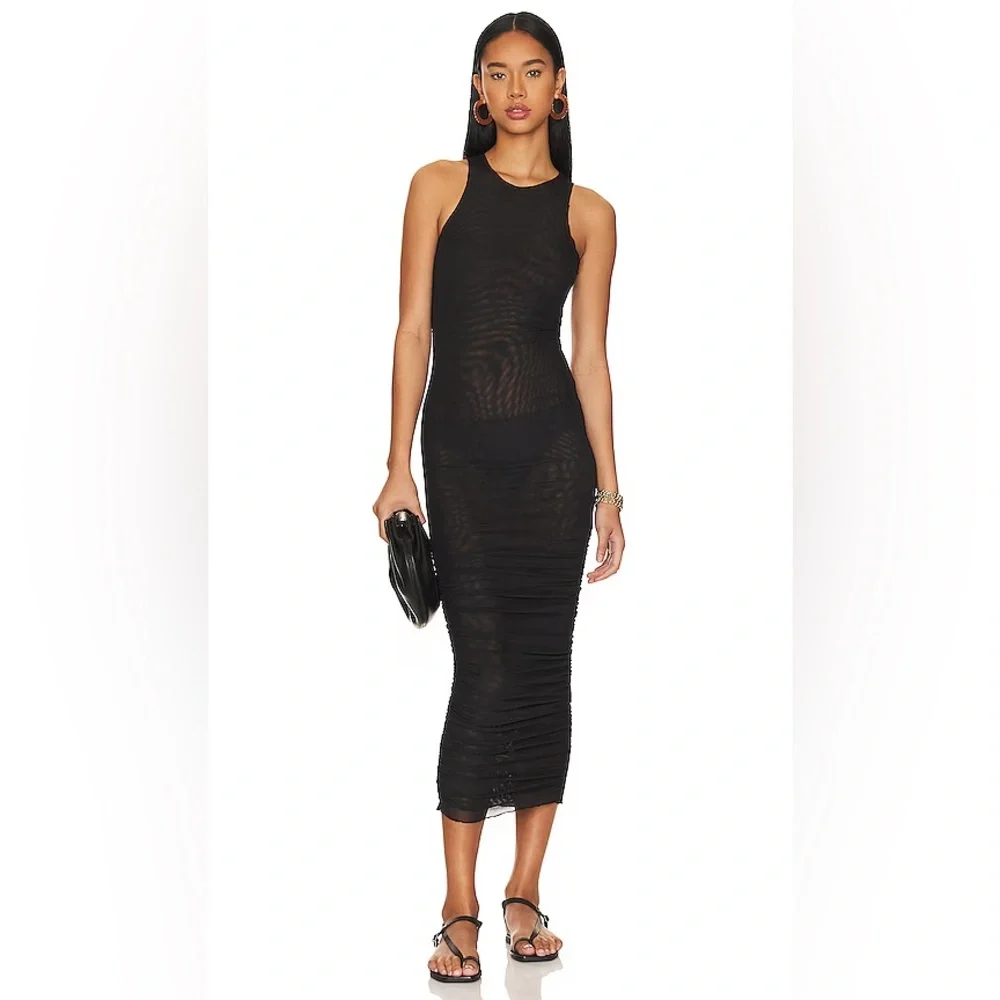 The Palamas Mesh Midi Dress by SNDYS is a mid length dress with a figure hugging fit. The dress is a black colourway with sheer fabrication. It also features a high neckline, ruched detail and a raw edge hem.Perfectly paired with loafers for a sleek date-night look.