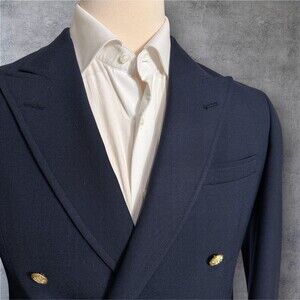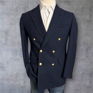 PALM BEACH Vintage Mens Double Breasted Wool Navy Blazer 40R Sport Coat Jacket