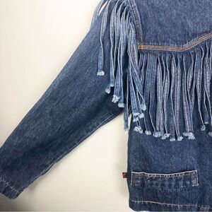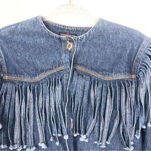 PALMER E PALMER | Vintage Denim Blue Jean Jacket Fringe Trim Women’s Size Small